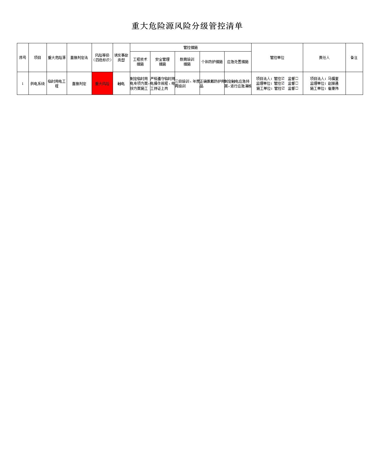 2024年一季度在建项目安全风险分级管控清单(小浪底南岸灌区工程施工7标)